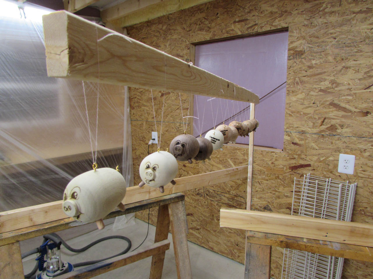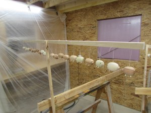 My wife tied a thread loop onto each one while I made up hanging frames.
