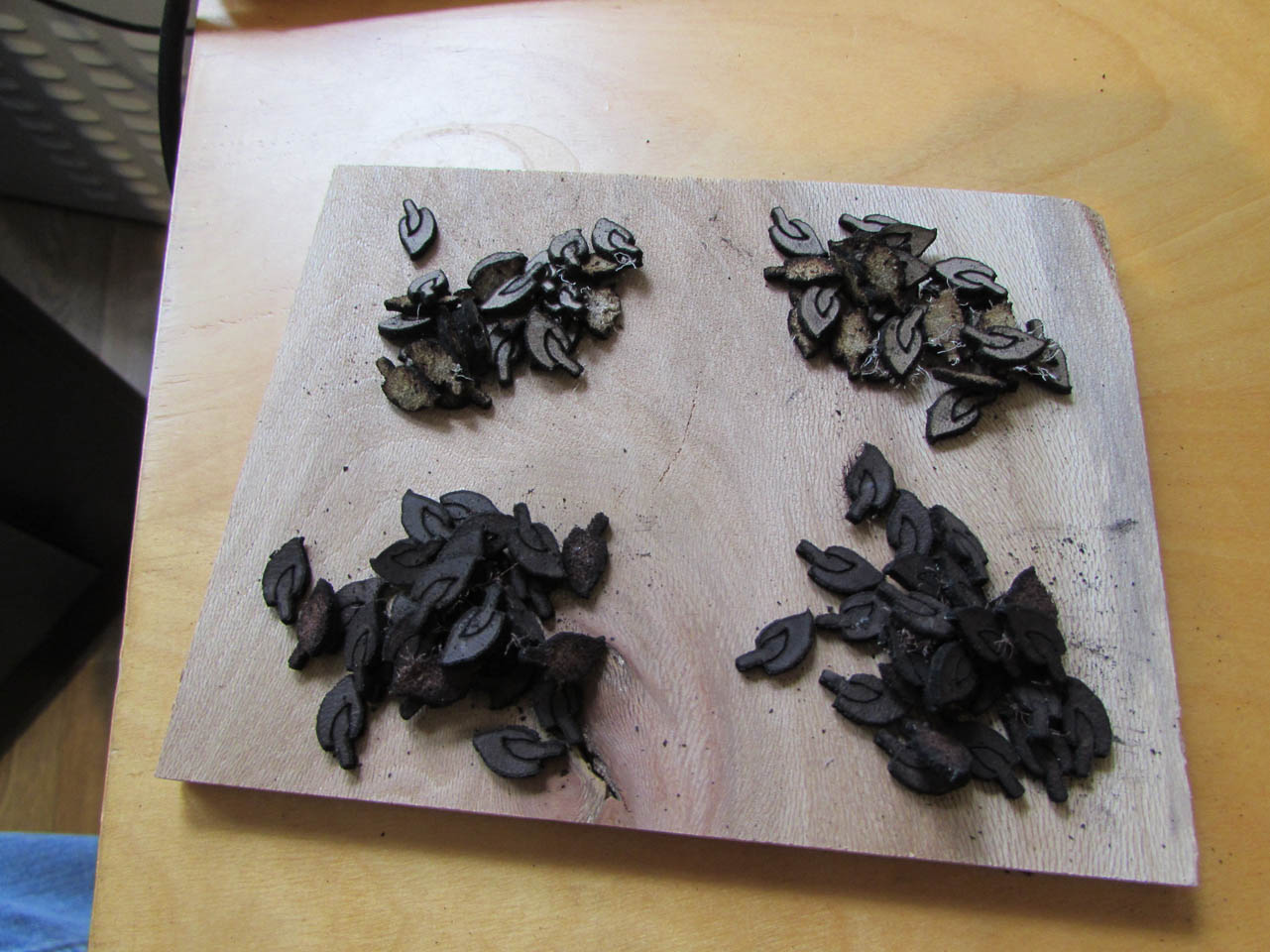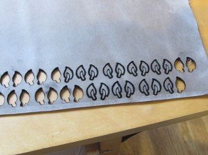 This is my first attempt laser engraving leather. I burned up a dozen or so ears before I found the right speed and power settings. Also, I had to laser through from the thicker finished side. When I cut from the back, it needed more power to get through the thicker opposite side and it charred them too badly.