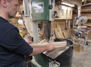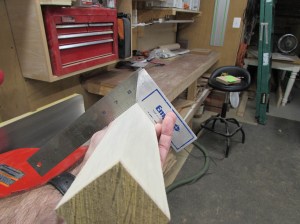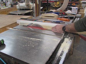 I then cut off the radiused side, 1/2″ wide, then laid that piece flat and ripped the radiused edges off at 1/2″ wide as well.