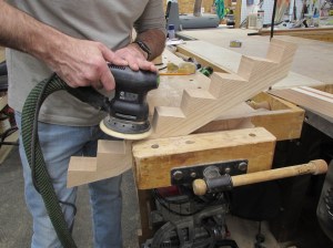 While that dries, and in between coats, I move back to sanding the top frame pieces.