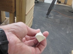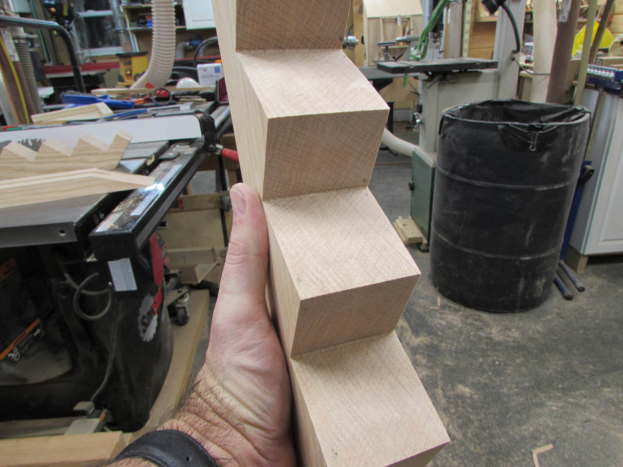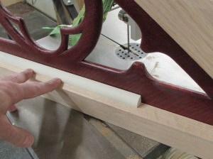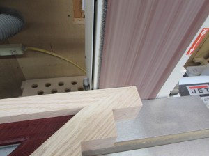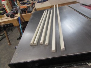 This produces a 1/2″ piece of quarter-round trim that will sit against the red center piece and give a nice contrast when the outer frame is stained.