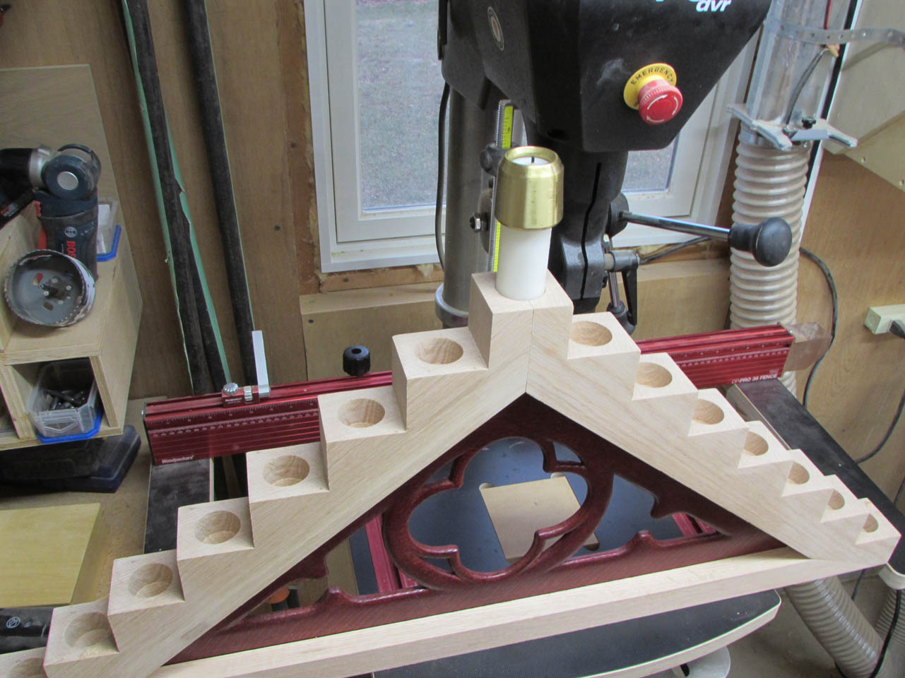 While that is drying, I can spend some time cutting out the stair steps along the top of the head piece that will give me the seats for the candles.