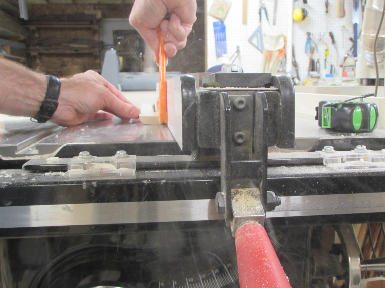 I made a 1″ block to set the depth stop so that I can repeat the depth accurately as I step down the sides.