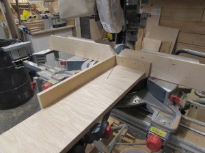 Since I need to cut the 19.33° angle on one end of the side pieces and a 38.66° angle on the other, I set up a second miter saw to avoid removing the jig and putting it back on…