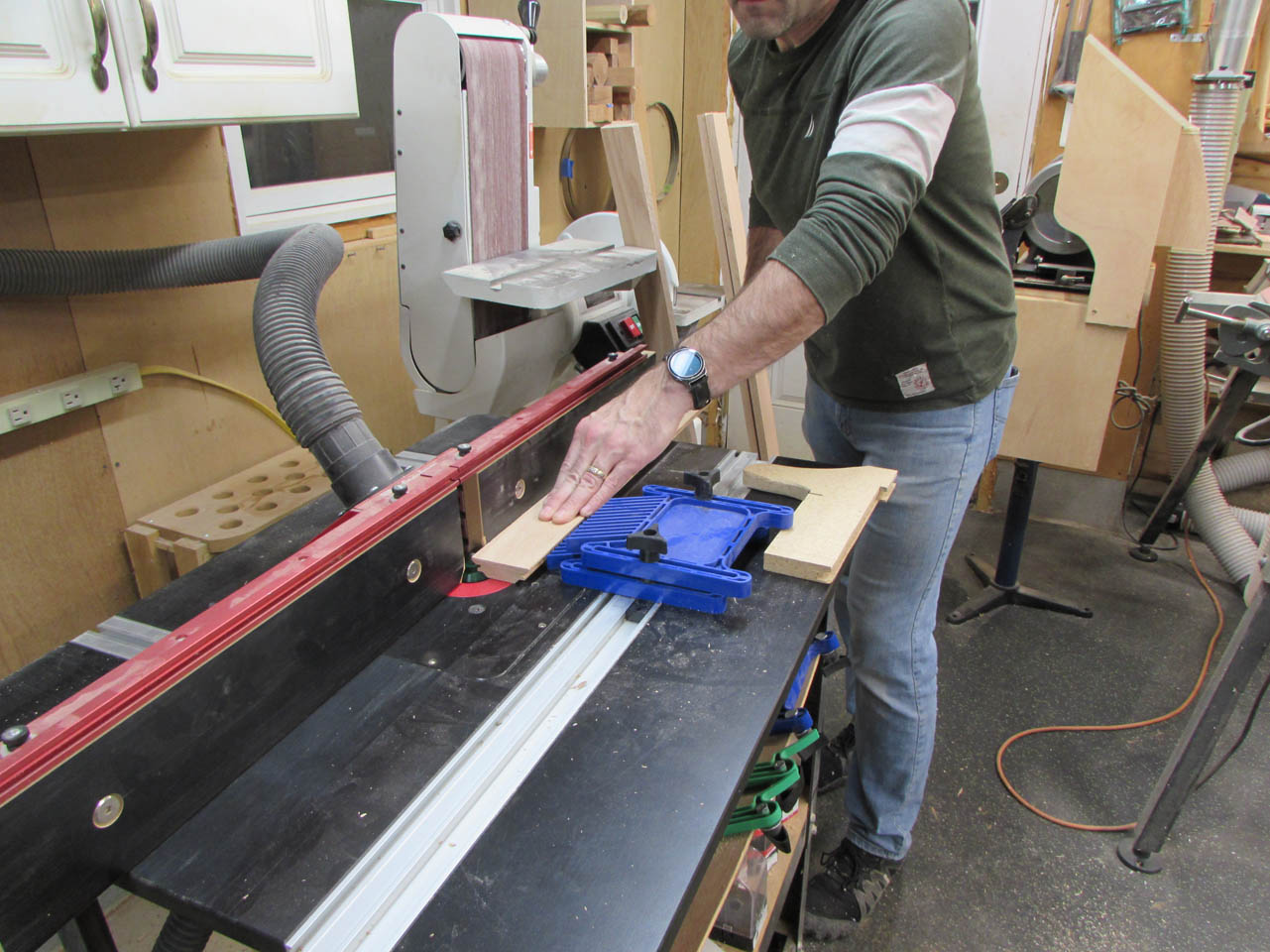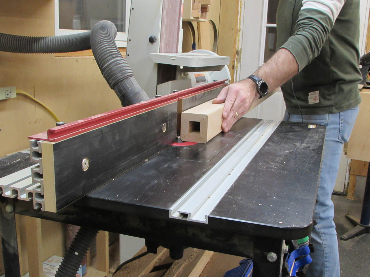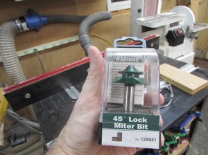I want lots of glue surface and an interlocking face to join all four pieces together so I am going to miter the edges with a lock miter bit.