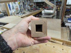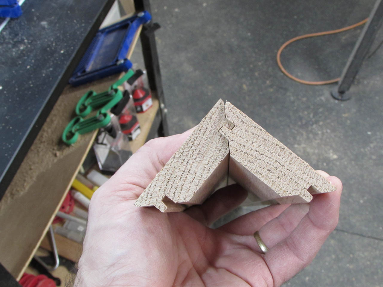 The cut is a little rough, but it will not be visible when the Tenebrae is assembled, so I sand the faces, but only until they are smooth enough to slide into the socket easily. I also chamfer the corners a bit to prevent any binding if there is any glue squeeze-out in the inside corners.