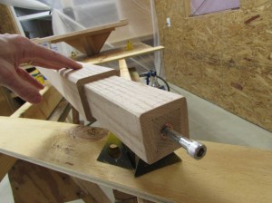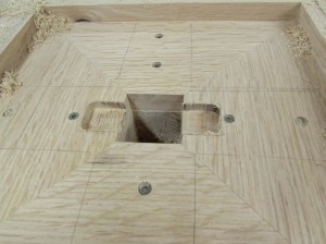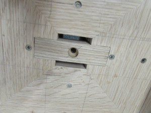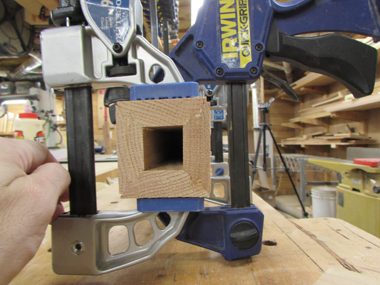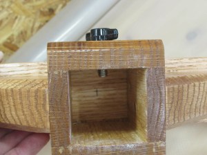 In order to have something for the screw to pass through and draw the post down tight, I have to install a block in the base.