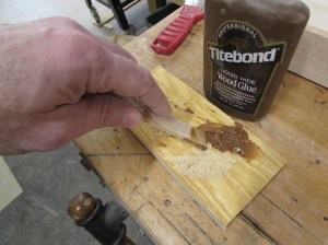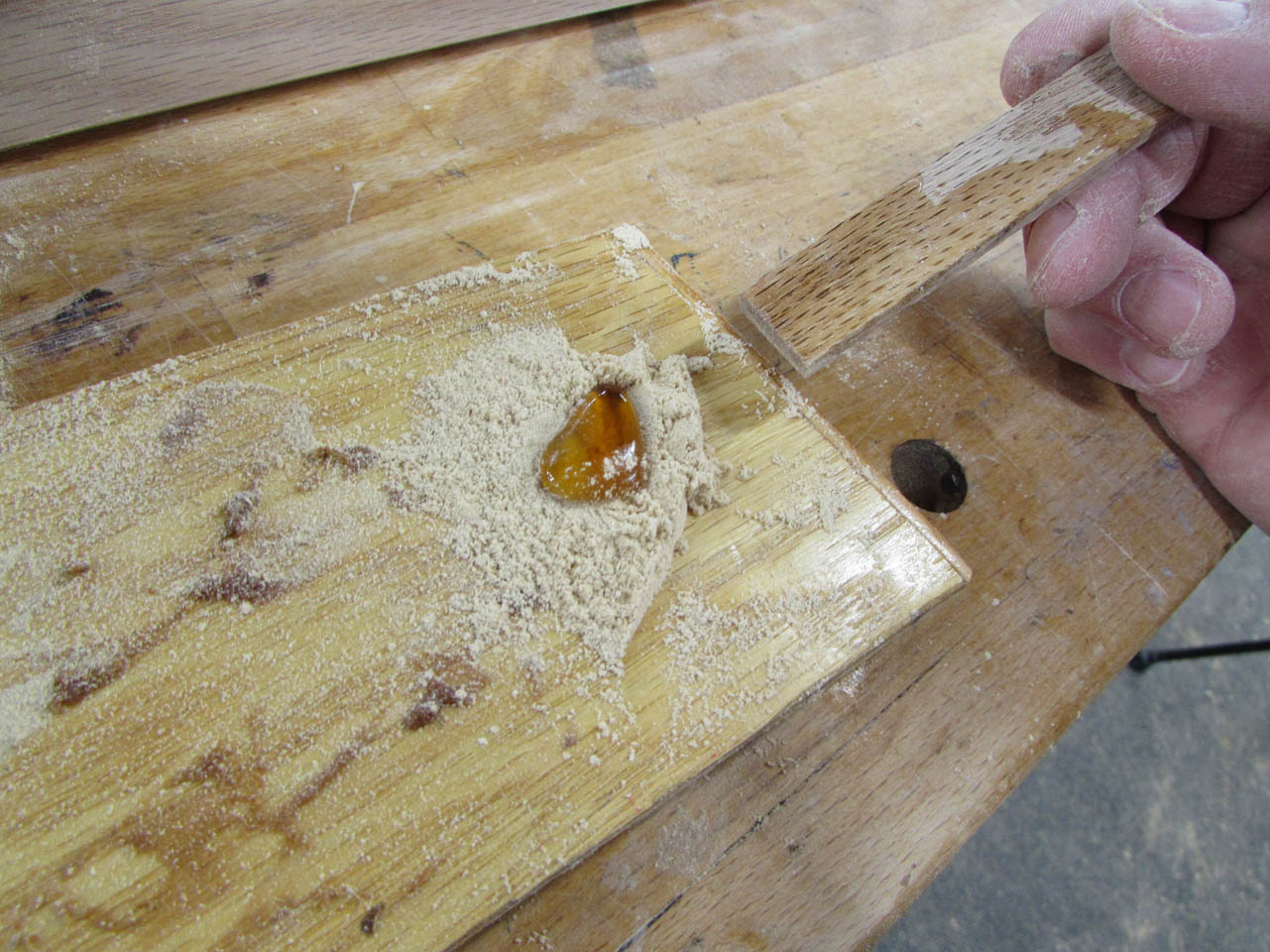 Before it fully dries, I hand sand the area to force new, dry sawdust into the drying glue.
