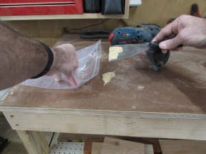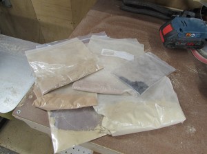 I save the extra wood flour in zip-lock bags for future use on other projects. I have several other varieties of wood saved as well, but I had run out of oak so I had to make more.