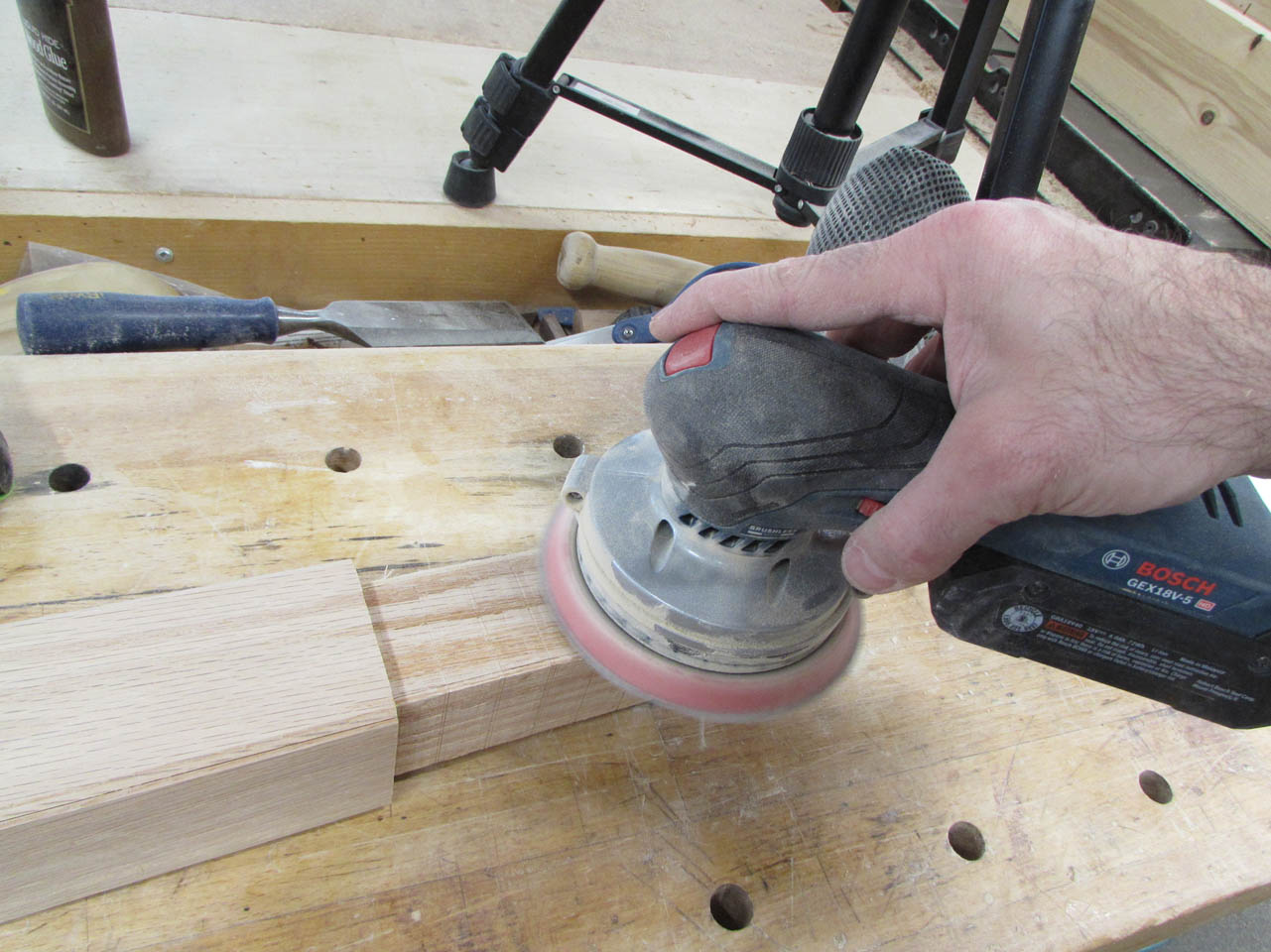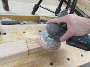To fill this, I need wood flour. To make wood flour, I just need a sander with a bag instead of a vacuum hose, to collect the dust. I needed to sand all the faces anyway…