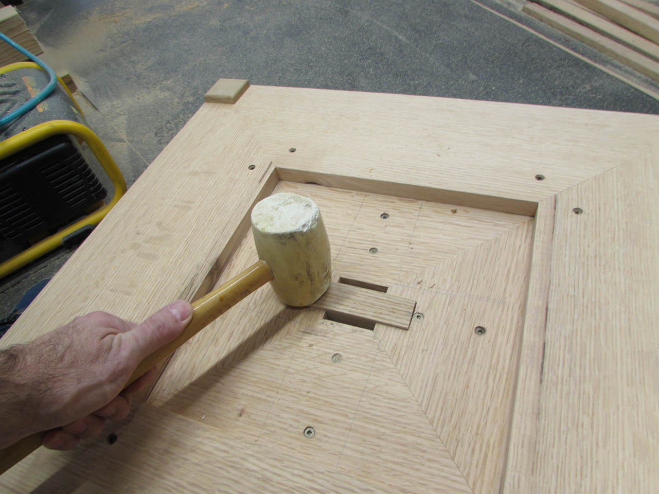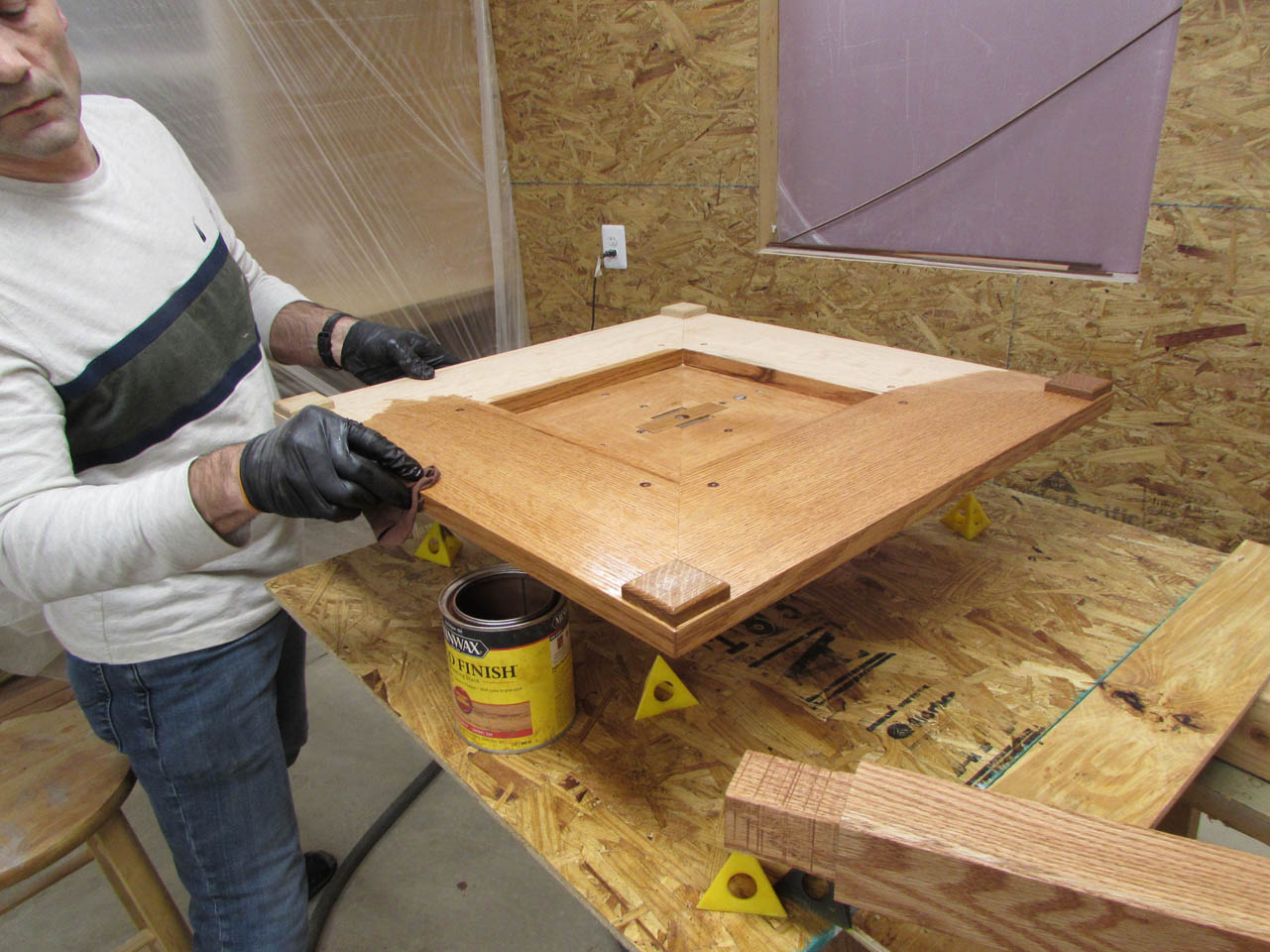 Before applying finish, I placed a few screws into the threaded inserts to prevent finish from coating the threads and causing binding problems.