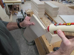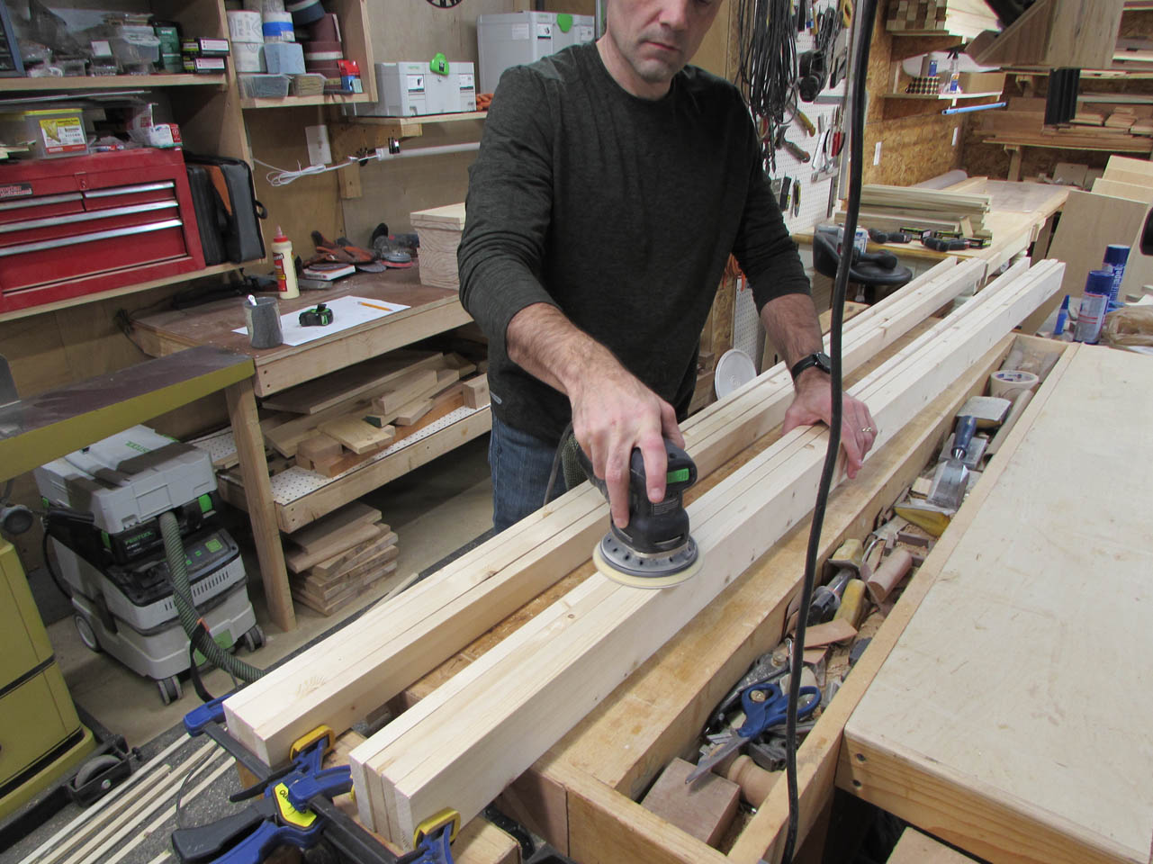 Then sand the sides with the orbital sander while also double checking the faces for defects that may need additional sanding.