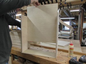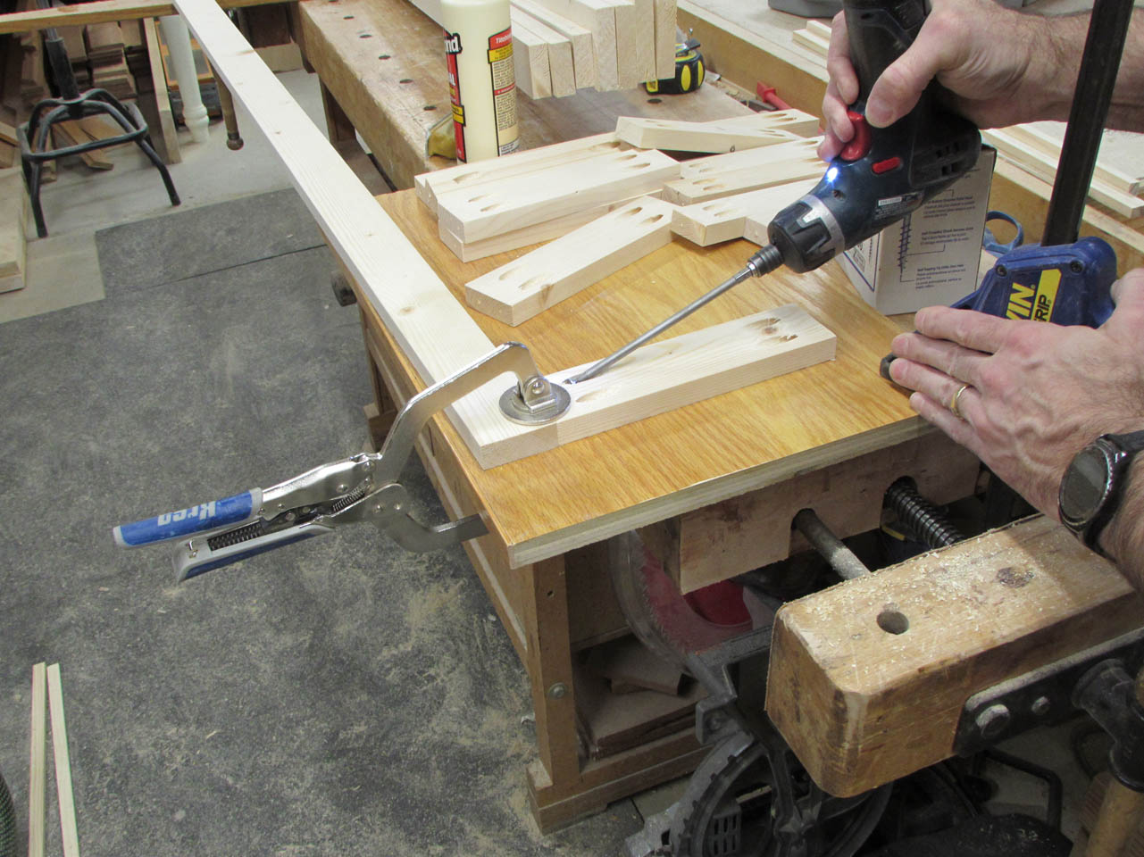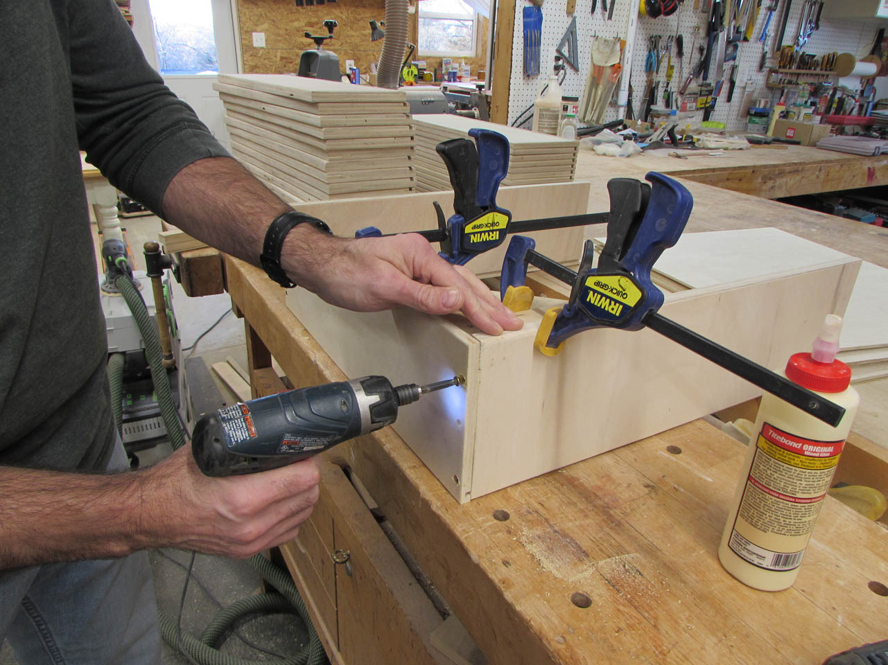 I spread a bit of glue onto the end of the verticals, then clamp them in place and attach the screws.