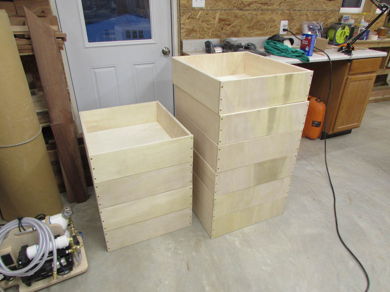 The ends are 1/2″, but the sides are 3/4″. The 3/4″ sides allow me a bit more structure to screw into without splitting the plywood. The 3/4″ is also thick enough for the screws on the drawer slide. If I used 1/2″ on the sides, the screws might poke through.