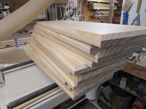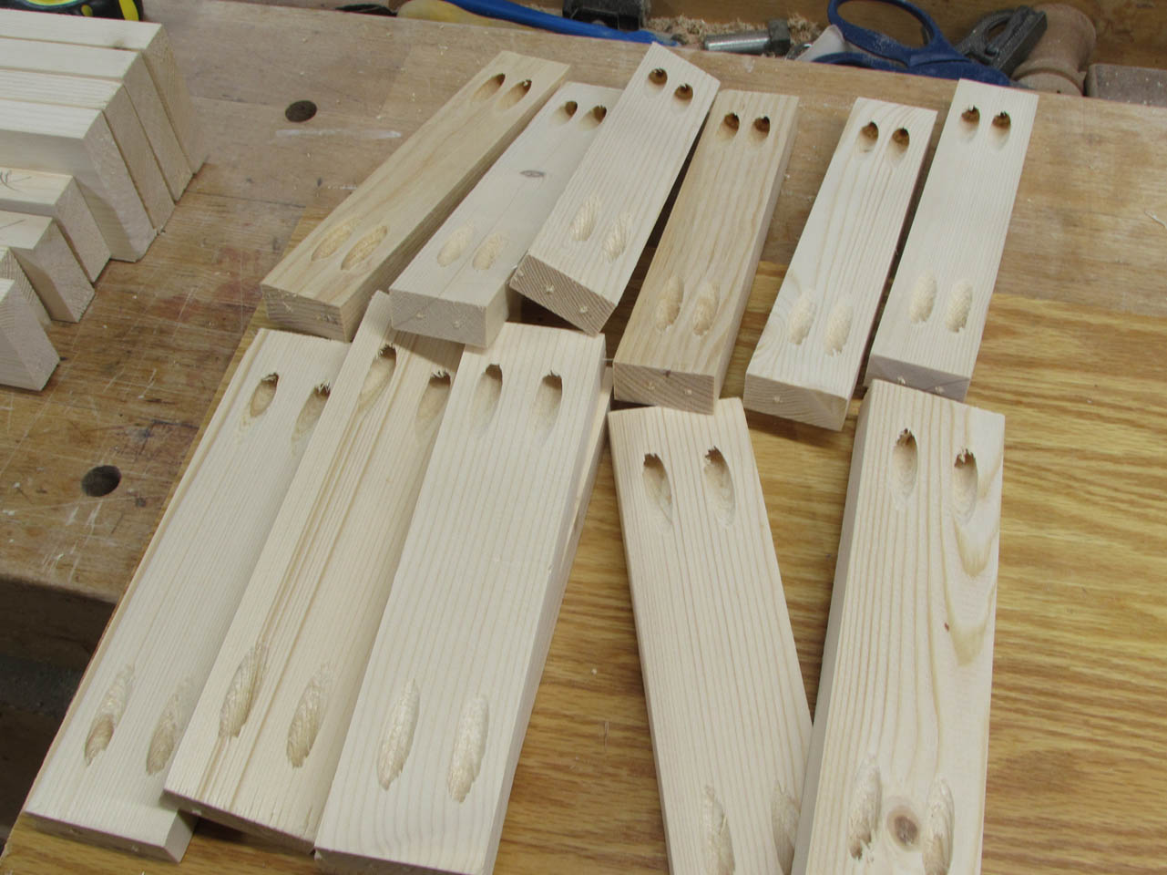 These are ripped down to 1-1/2″ and 2″ widths, then cut to 8″ long on the cross-cut sled.