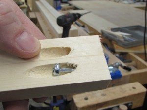After setting the center assembly flat on the floor, I can counter-sink and attach with more screws.