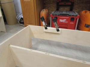 The next step was to drop in the pre-cut piece of plywood and square it all up. It was a tight fit, which is good. I only had to shave about 1/32″ off one of the corners with a block plane to get a perfect fit.