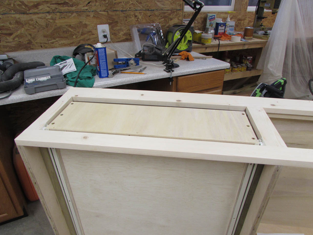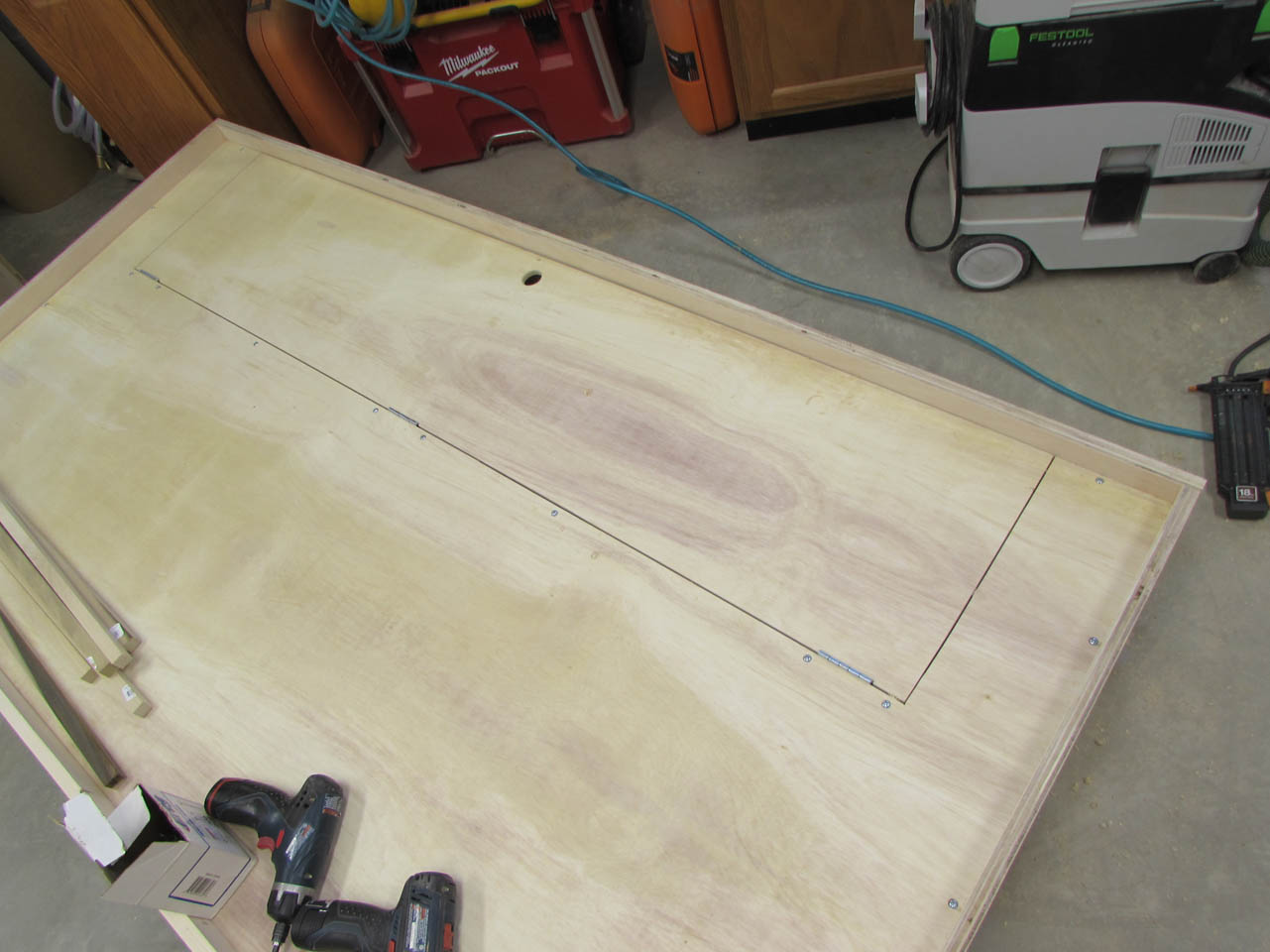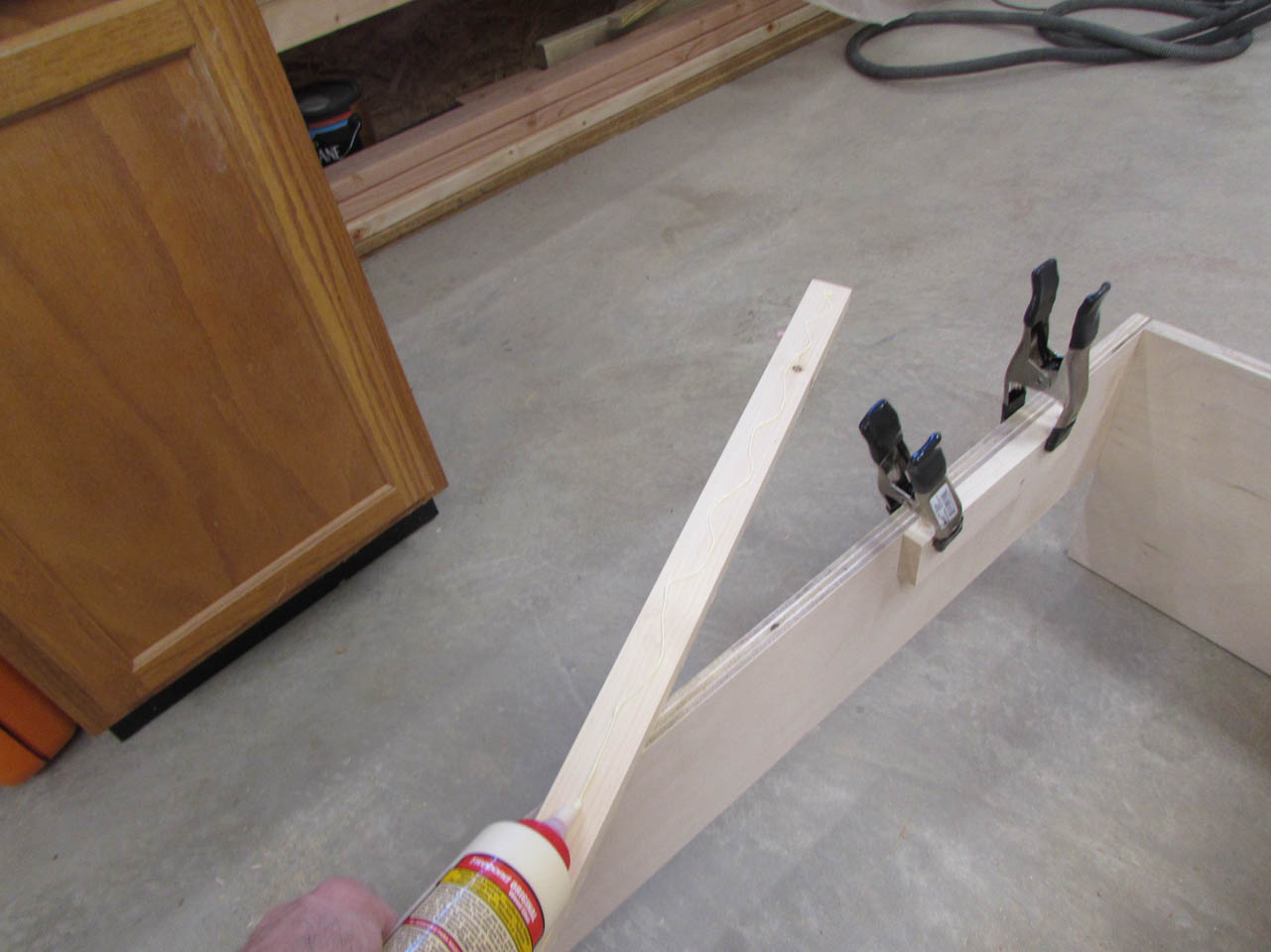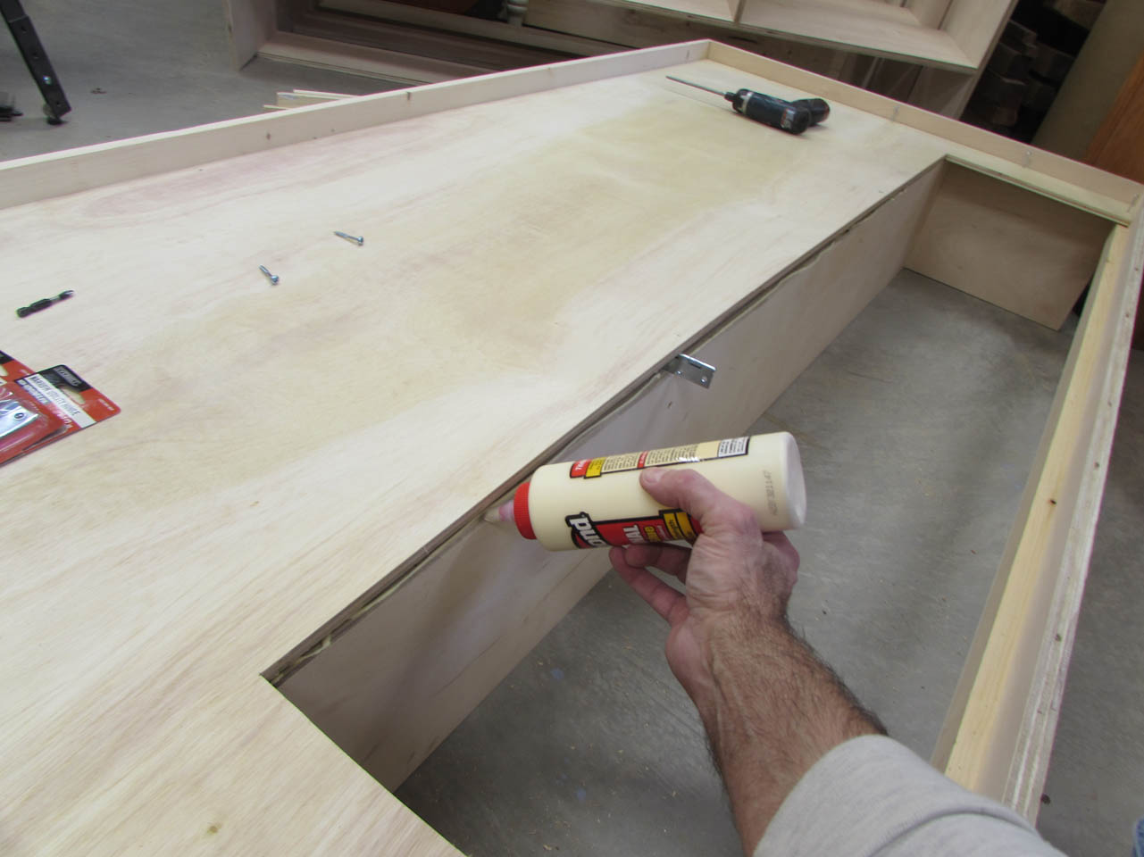 I decided the plywood will be permanently attached so I added some glue to the top of the center divider before attaching with some screws.