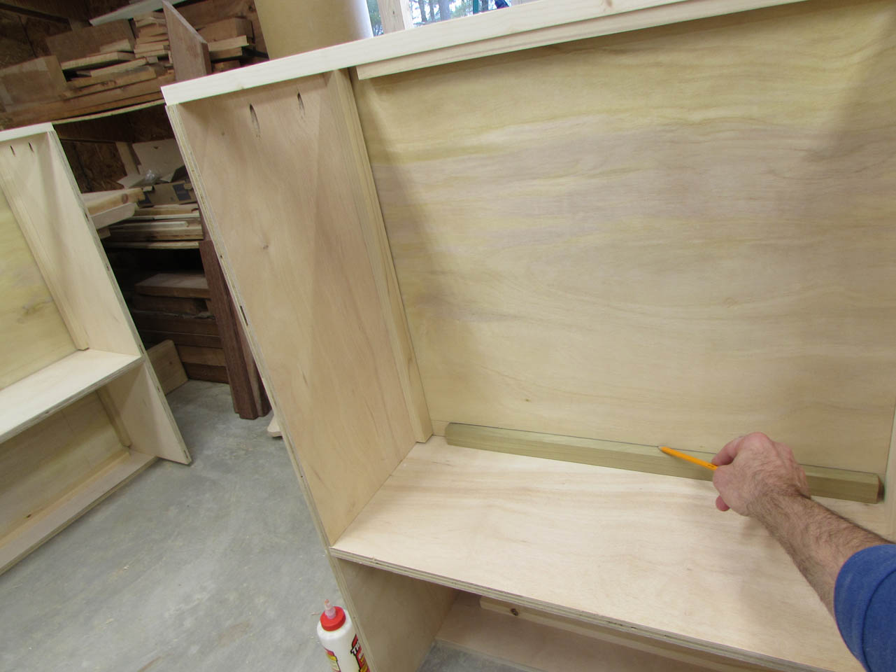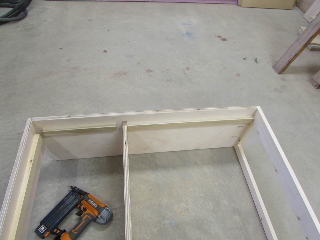 I also attached some narrower ones to the face frames for additional support above the drawers.