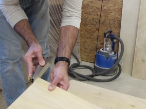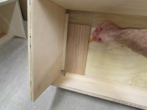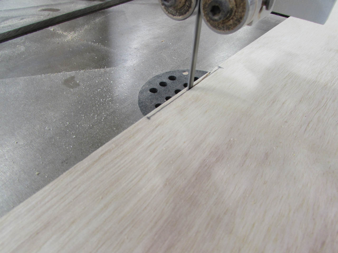 I installed the storage panel and marked the location of the hinges so that I could cut a notch for the hinge to attach to the door. I used the bandsaw to cut these notches, I could have used a jig saw, but this was just faster.