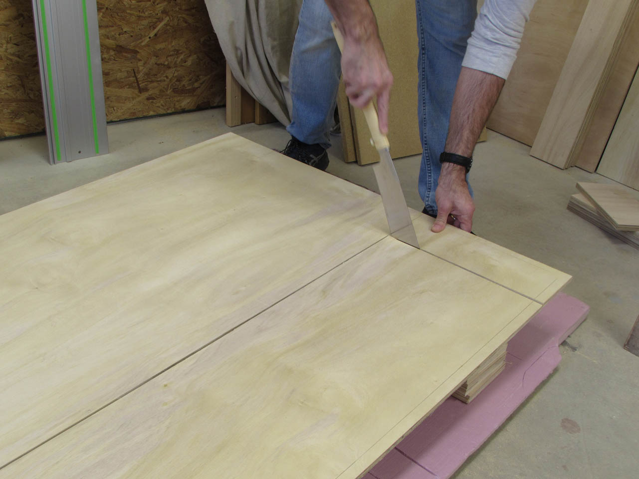 Next, I set up my track saw to carefully cut out the panel. After that, I raised each side and finished the cuts by hand so they looked neat.
