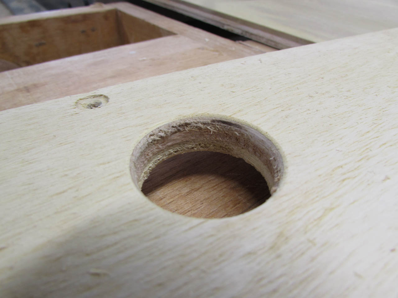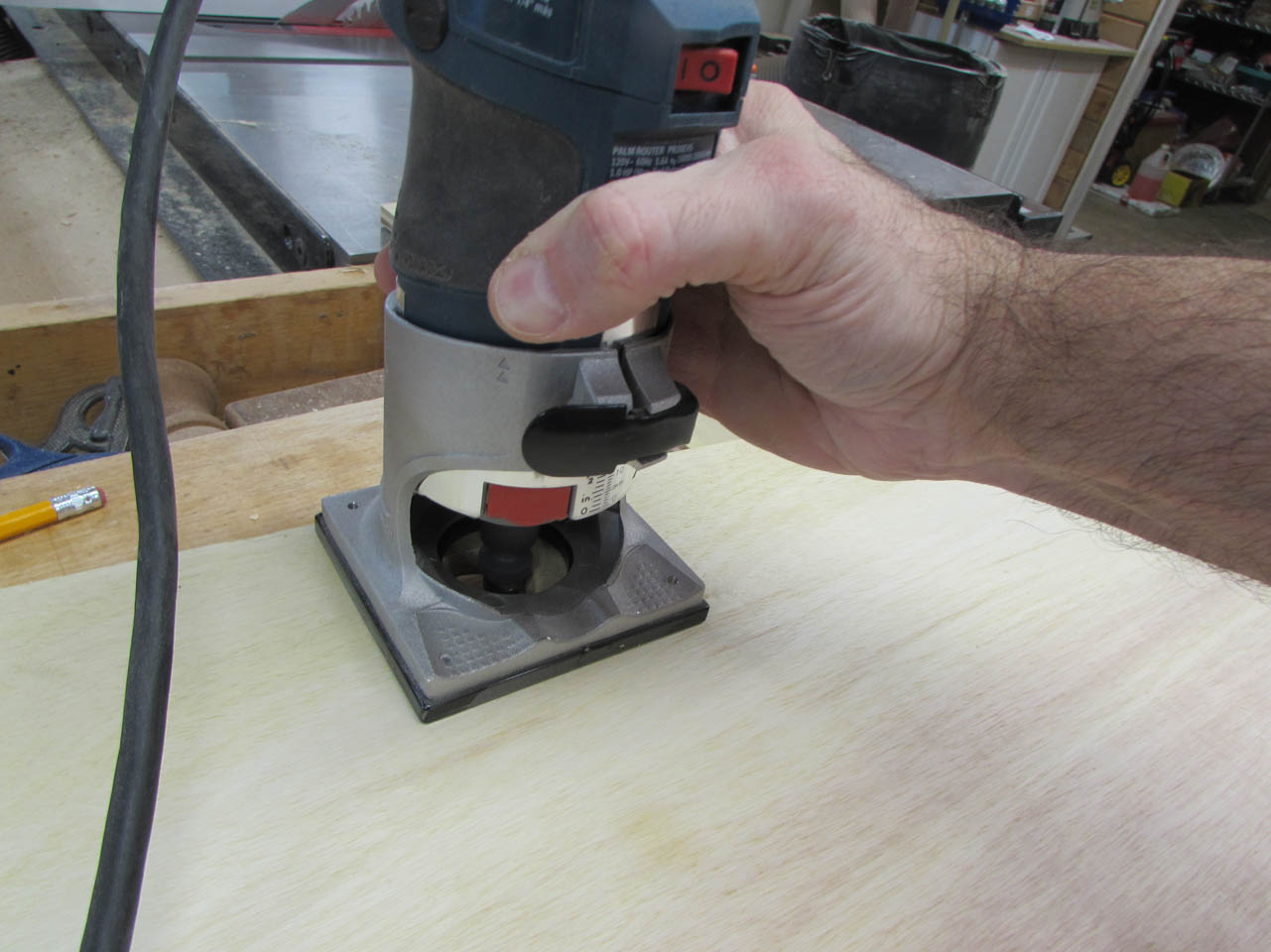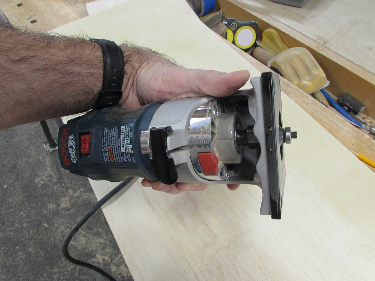 This finger hole will be sharp so I added a 1/8″ round-over to both sides with my trim router.