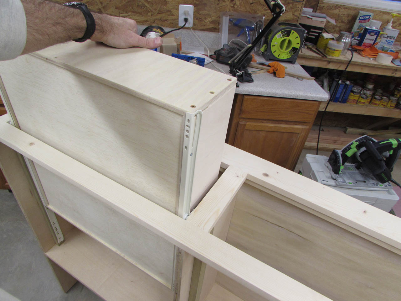 For the rest, I created spacer blocks to keep the sides parallel. If they are not parallel, the drawers will bind.