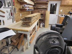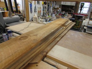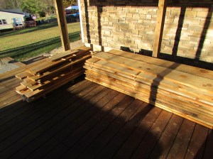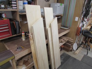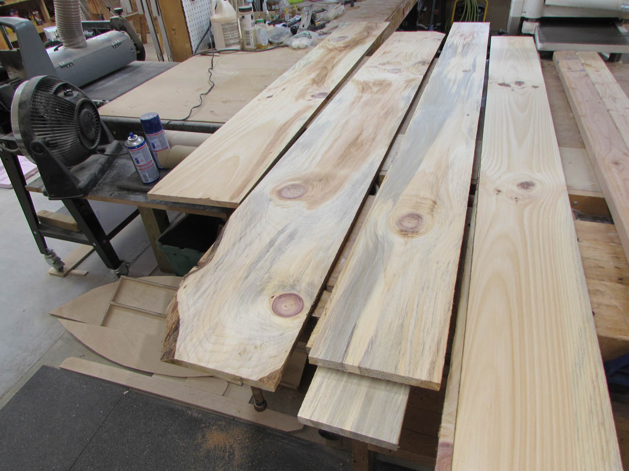 I bought two new pieces of 3/4″ plywood that will make up most of the structural components and I will be using solid pine for the shelves. I acquired a pile of air-dried 5/4 pine from my buddy Dave, It had been dried but was accidentally left out in the rain.