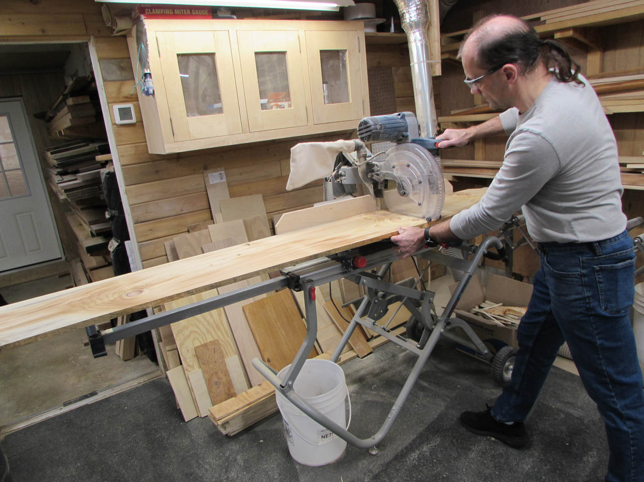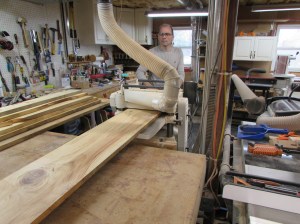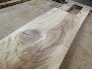 It has a lot of big knots but most of them are tight and I can cut around the rest because I am making a lot of smaller boards for the shelves. Also, I am making a lot of saw dust, about 40 gallons from these six boards alone…