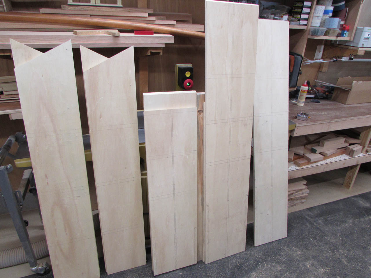 I managed to only screw up one of the cuts and had to replace one of the plywood pieces with a piece of solid pine panel that I glued up.