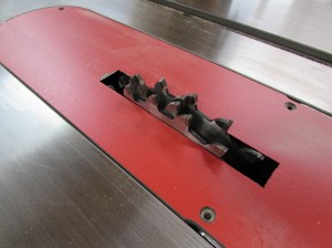 But for the 3/4″ wide dados, I set up my dado blade and used the cross-cut sled.