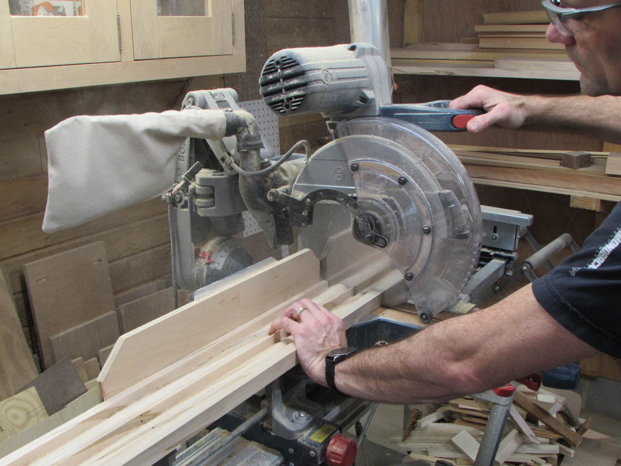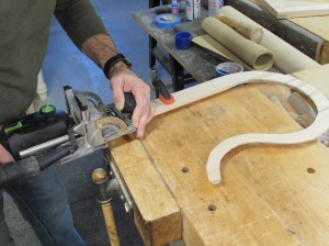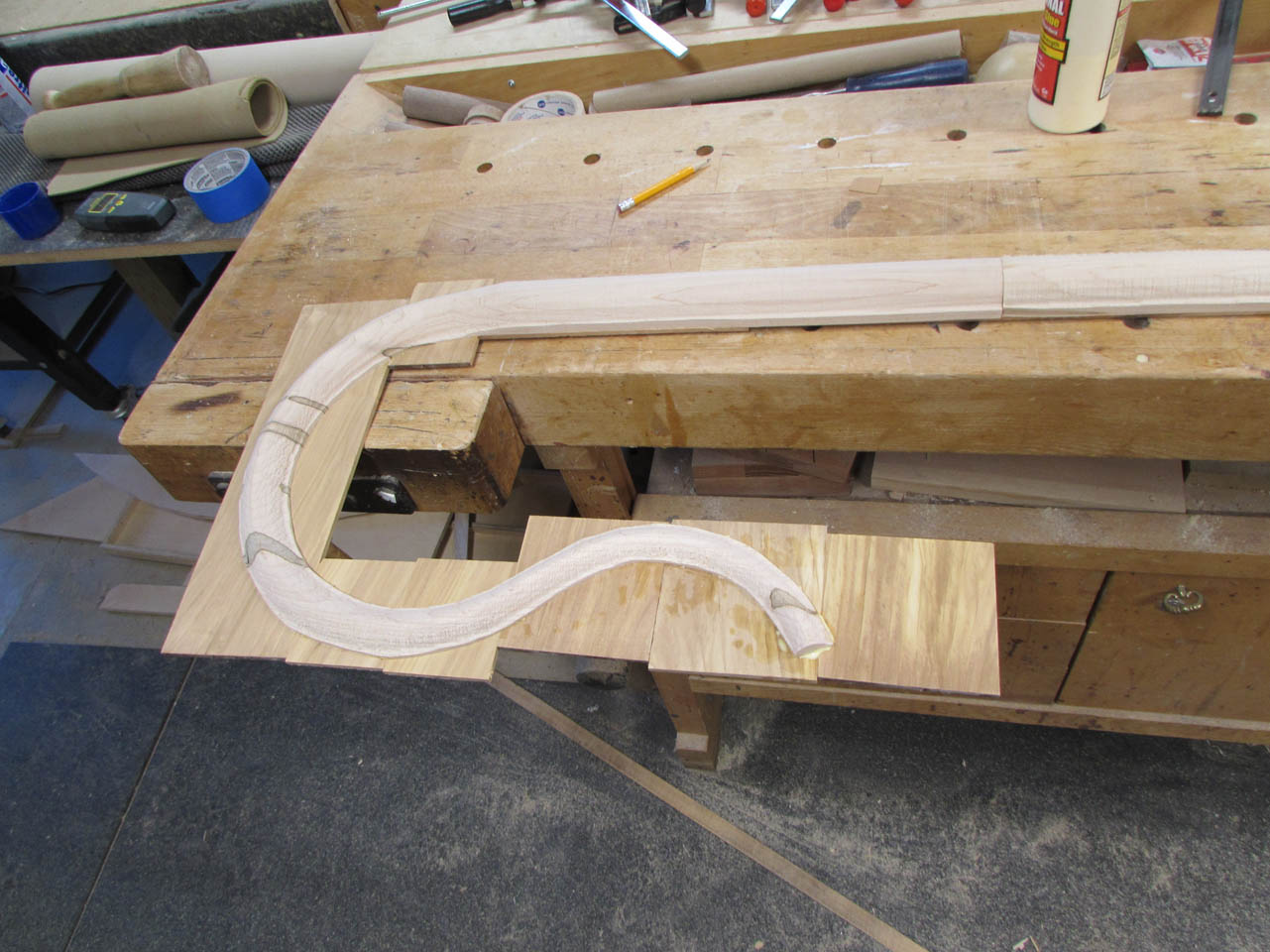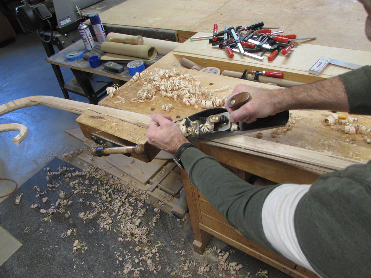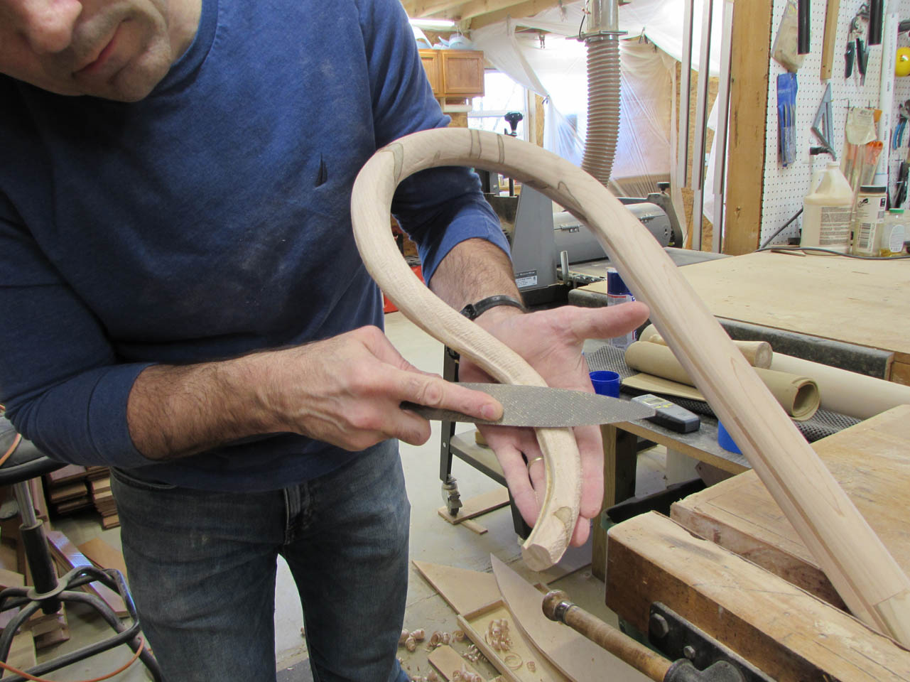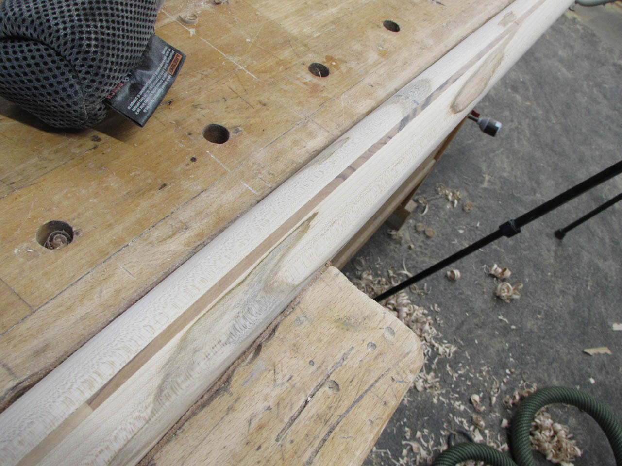 The curves and the multiple grain orientations also make it a pain to shape and smooth… Most of the curve will have to be final shaped by hand with a couple of rasps.