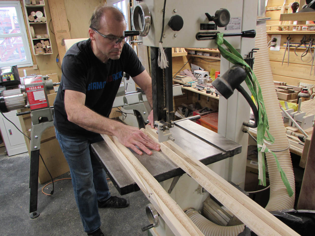 When it was dry enough to keep working, I pulled the clamps and cut away a lot of excess on the band saw. This will help me to align the next half when I glue it on.