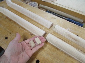 I cut and laid out all the pieces to the best orientation to strengthen across the grain at the top, along the grain at the connection, and down the straight portion of the shaft.