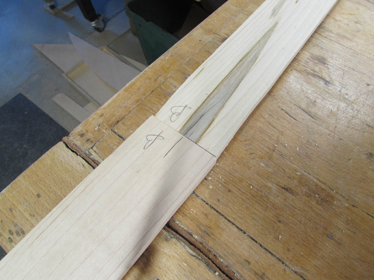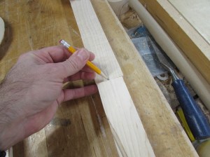 On the flat side of the joints, I drew a mark across them both to locate the center of the tenon.