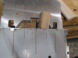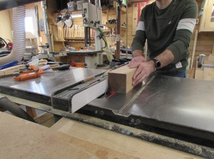I set the saw for just over 3/16″ thick and cut about halfway through one side, then flipped the block over and did the same on the opposite side.