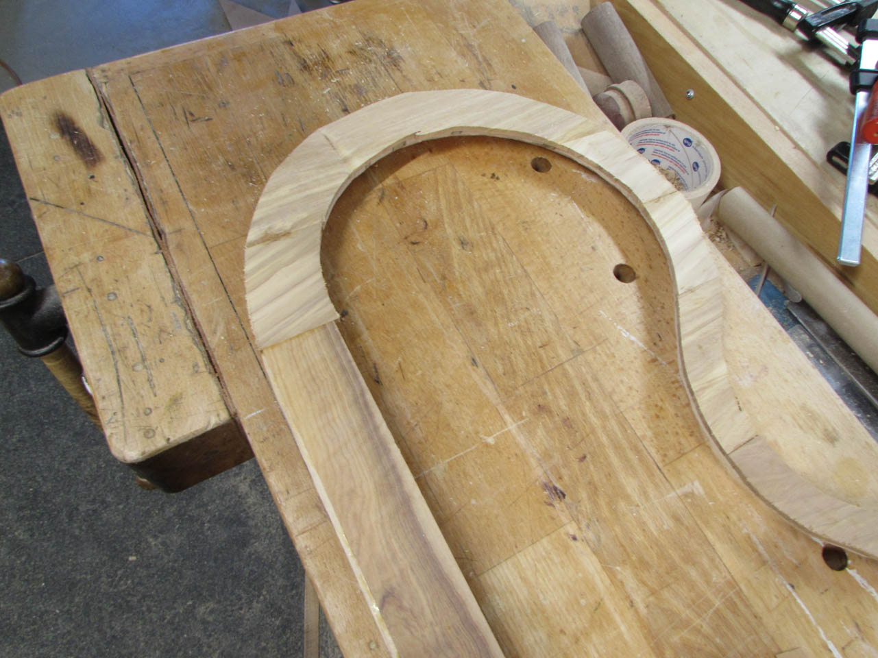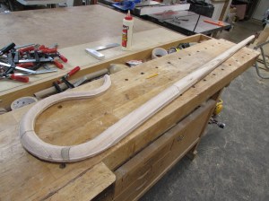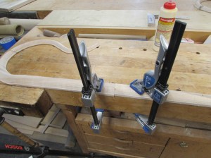 The very thin curved end took the most attention because the wood is tapered and springy. It really could not be held in place without bouncing around a lot. I am encouraged by how much abuse it would take without breaking. The cross-laminated design works really here.