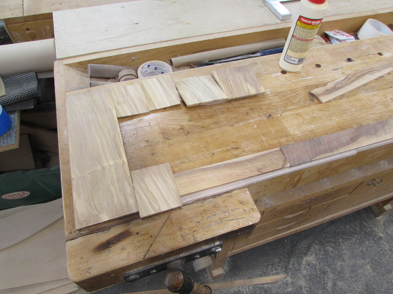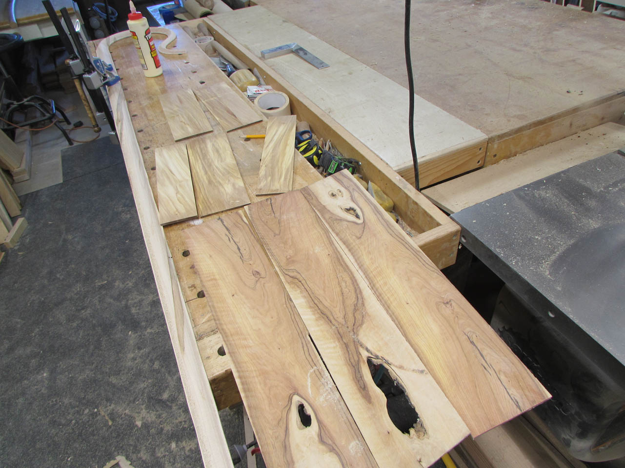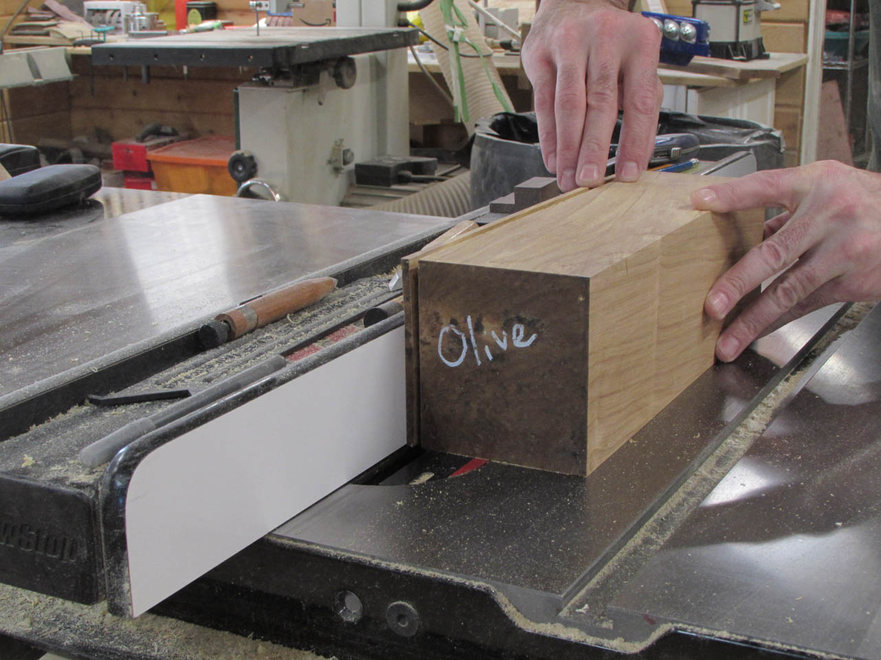 While they were drying I pulled out the large block of olivewood to cut strips for the center of the crosier.