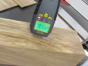 I was rather appalled to notice that the block of wood was soaking wet, just 1/4″ in. I paid for kiln-dried wood and it was at 21% on my moisture meter, not the 5-8% that I was expecting.