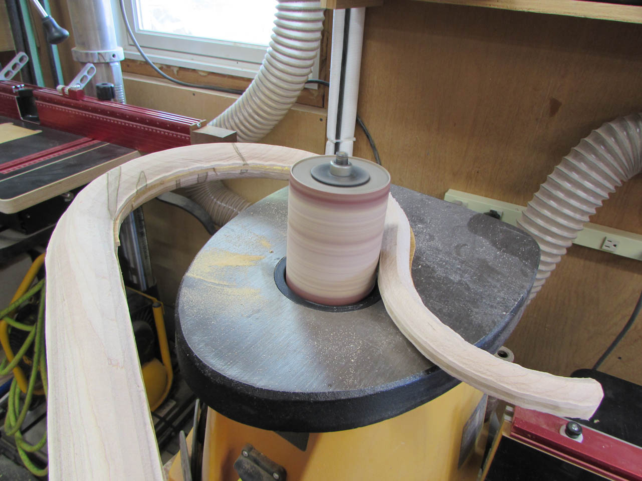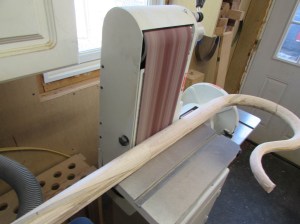 I worked with my spindle sander to clean up the joint around the curvy parts. Then I used the large belt sander to get some of the straighter parts a little closer to the final shape.