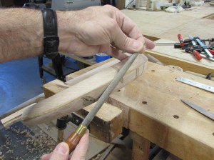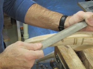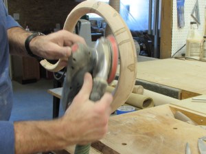 The mill marks from the rasps can be removed with my orbital sanders, but even though the orbital has a soft pad, the final sanding will have to be done by hand.