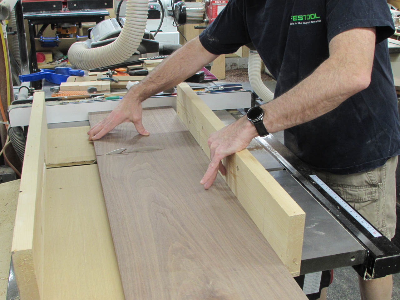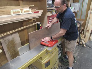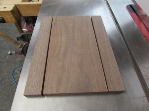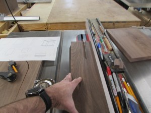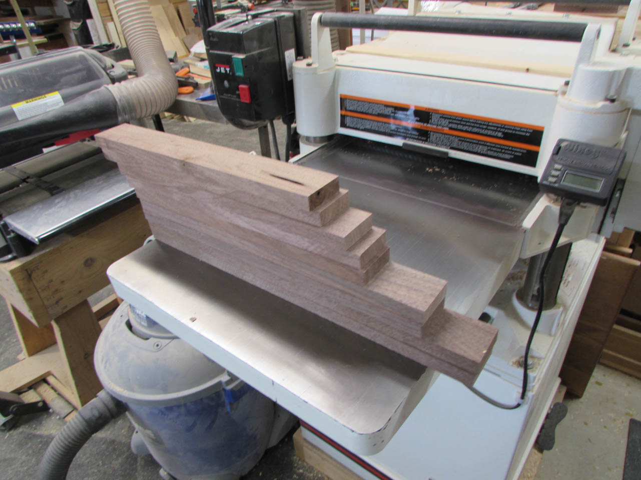 I found a beautiful piece of walnut that was over 12″ wide. It will be perfect for what I want to do. I start by planing the material down to 3/4″ thick, then cut it down to more manageable lengths.