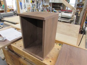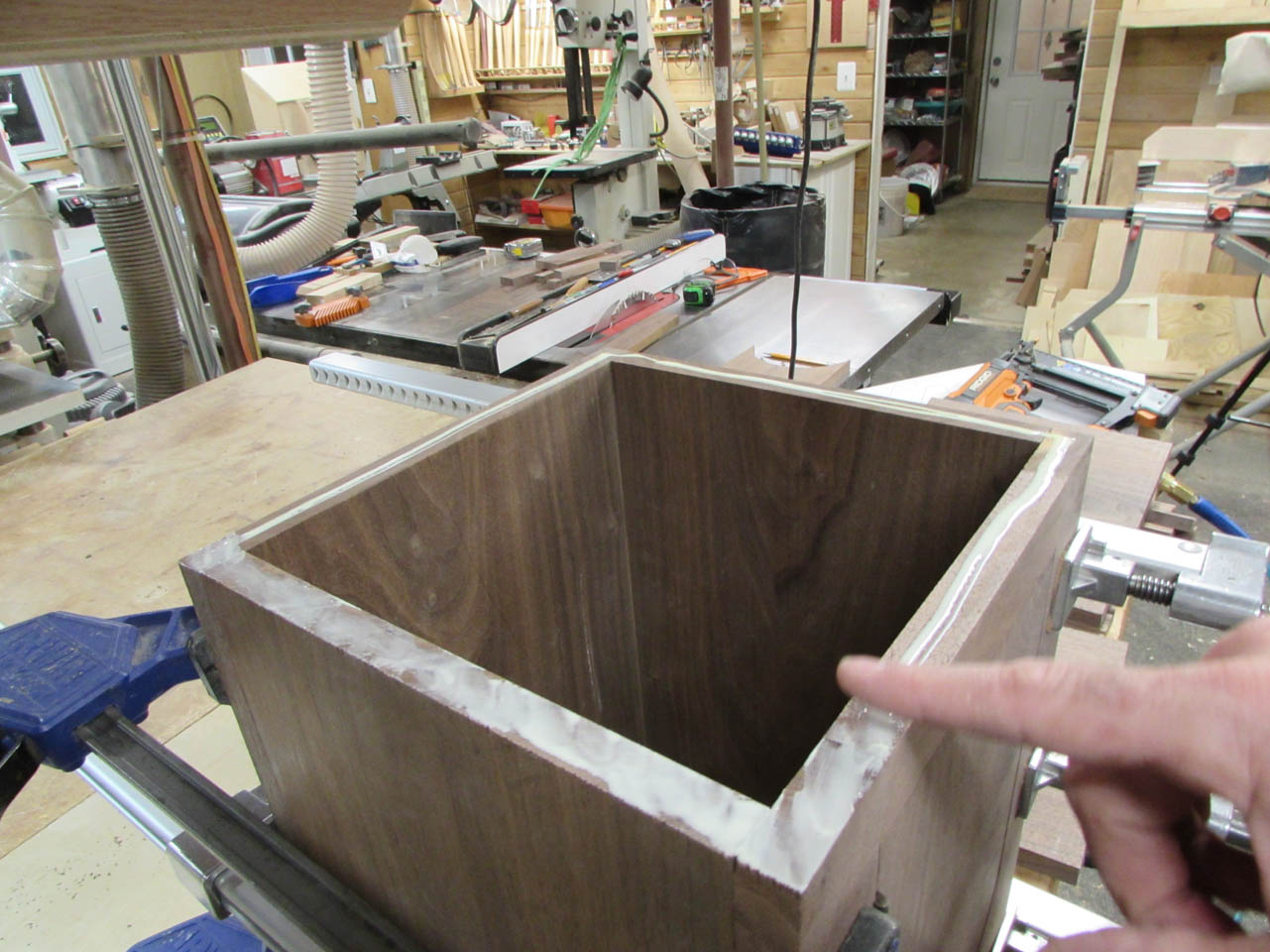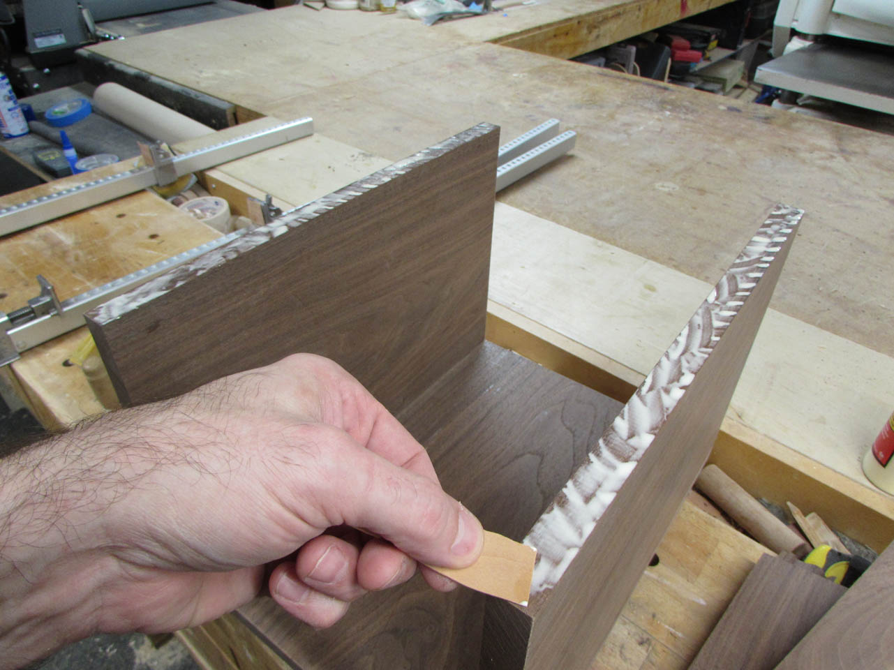 After the glue dried, I sanded all of the glue joints flush to the sides of the cabinet.