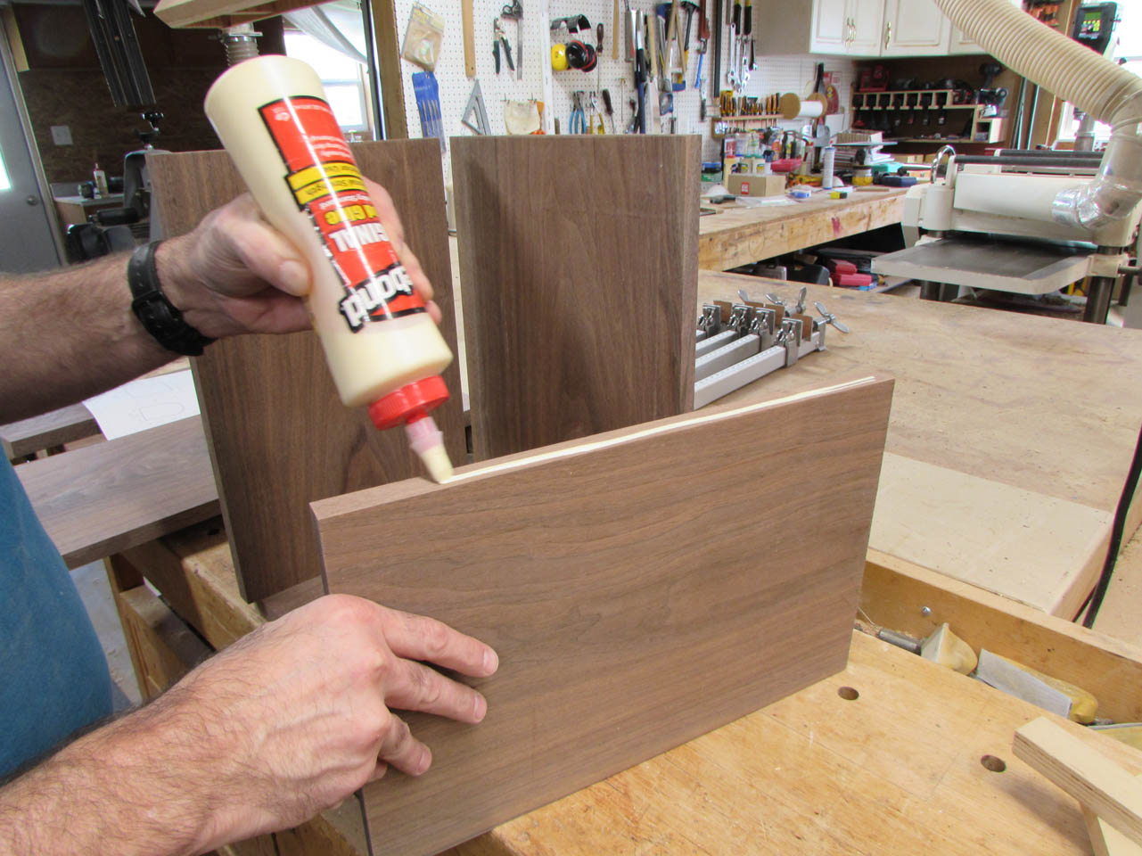 After that dried, I applied glue to the front edge of the sides and attached the door face.