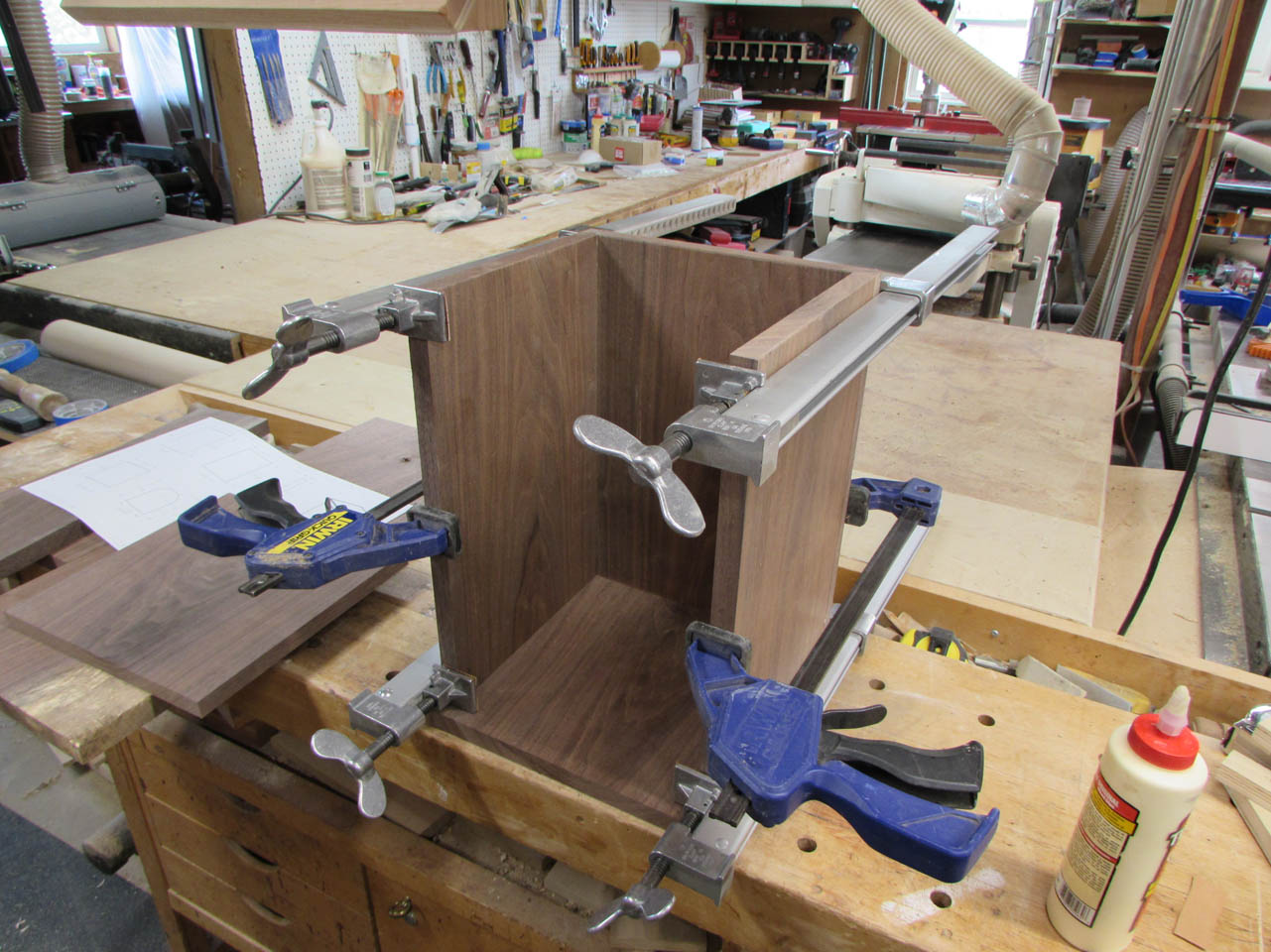 I decided to start gluing up the cabinet so that it can dry while I work on the door.