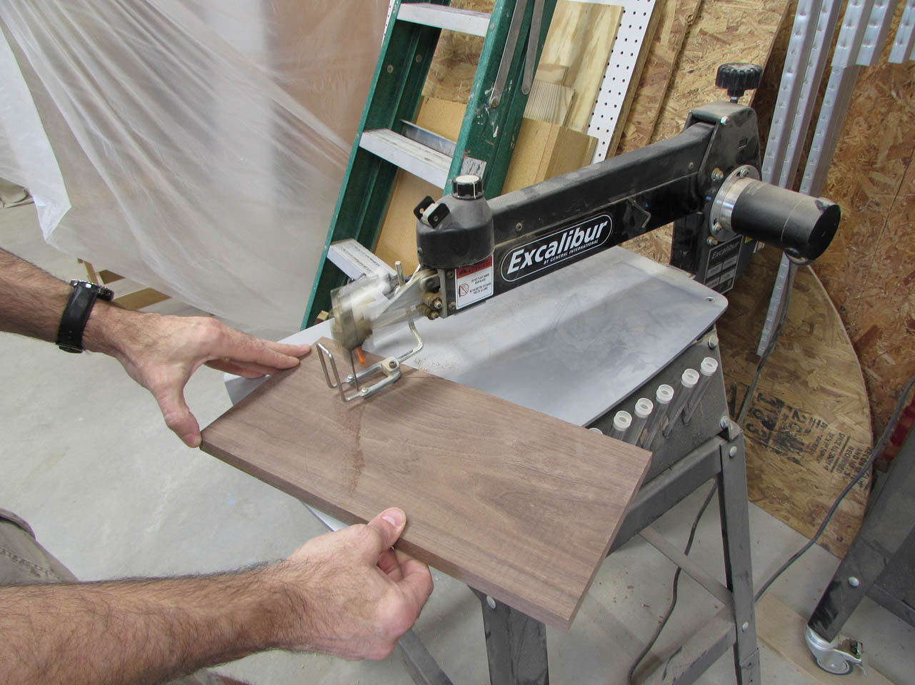 Then I cut the arch on my scroll saw. I used this saw because it creates a smooth cut that requires little sanding.