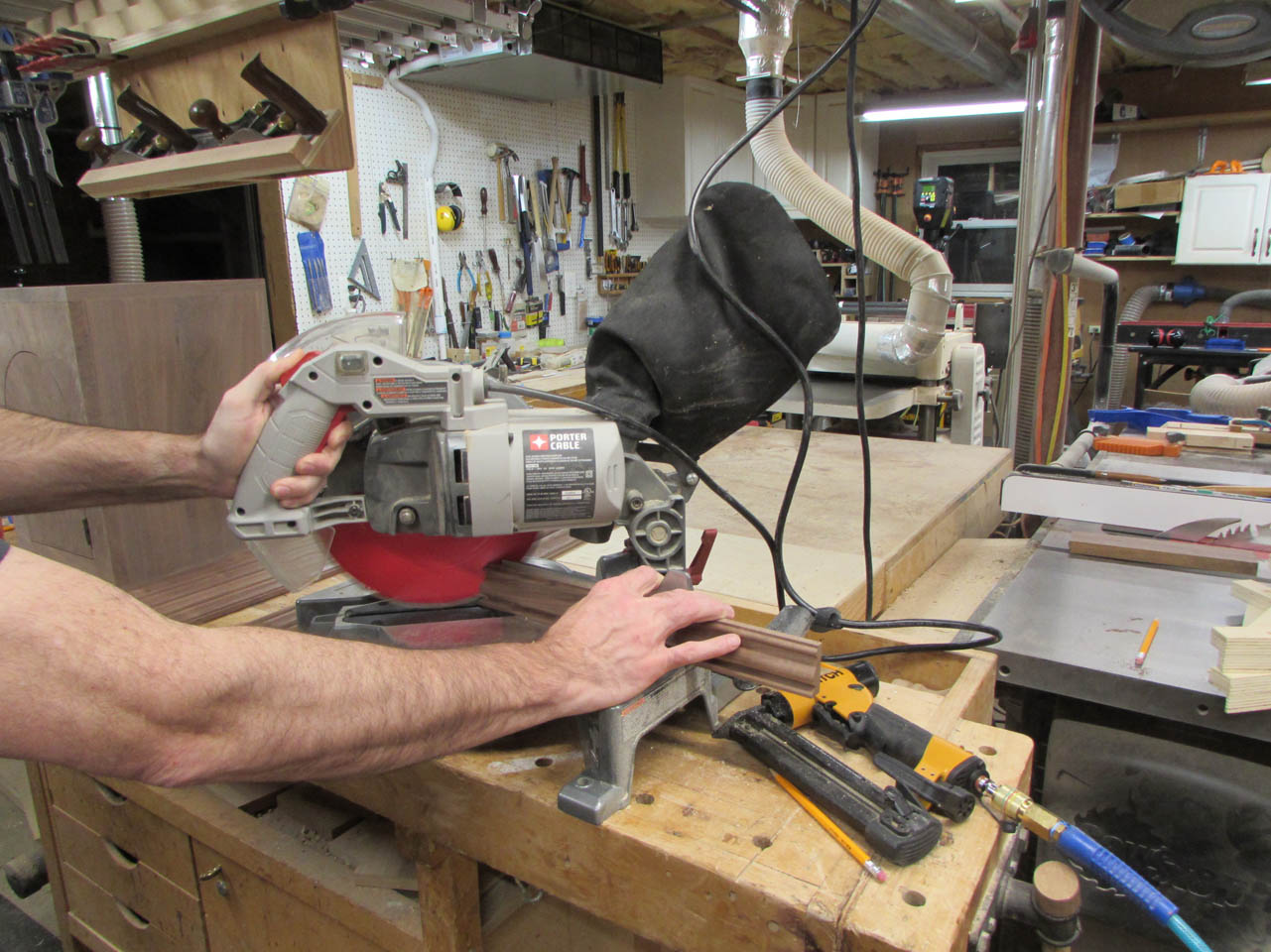 I pulled out my smaller miter saw for the 45° miter cuts. It seems to be far more accurate than my larger miter saw. Probably because this one is fixed, not a slider like the other.