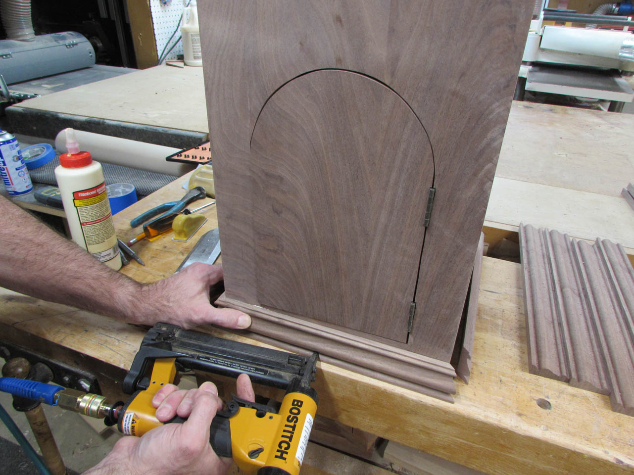 I pinned it in place with brad nails at the corners, then clamped the rest of it together while it dried.