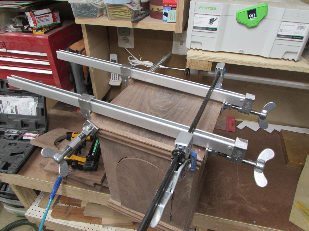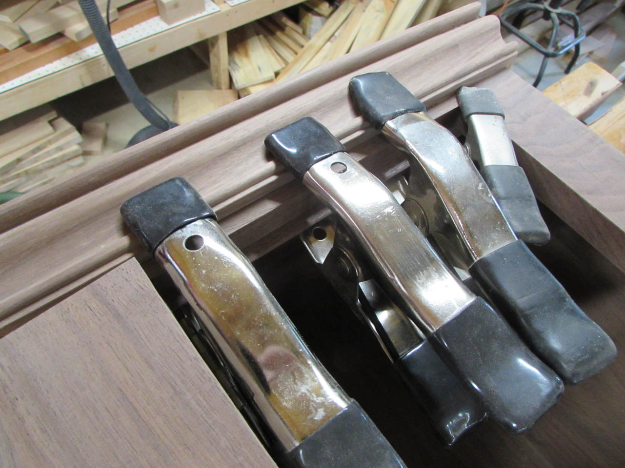 I don’t want to see any gaps along the top so after the top trim is attached, I clamp all of it to the box as tightly as possible, then sand the top smooth.