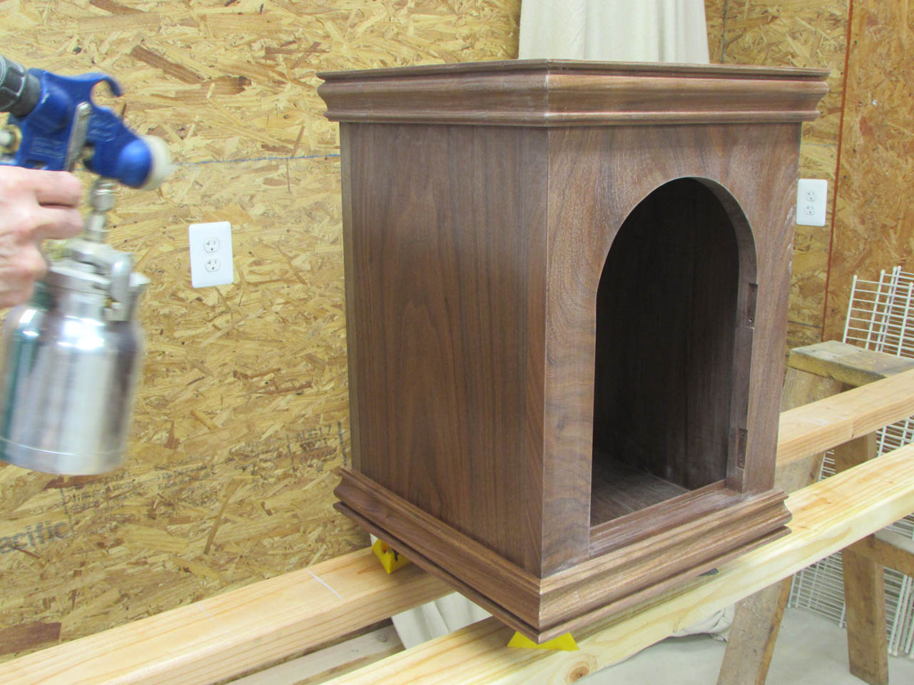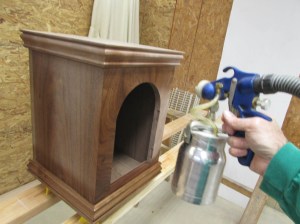 Before that, I also need to add a coat or two of finish to the newly carved areas as well as the inside areas of the box that the spray gun cannot reach.